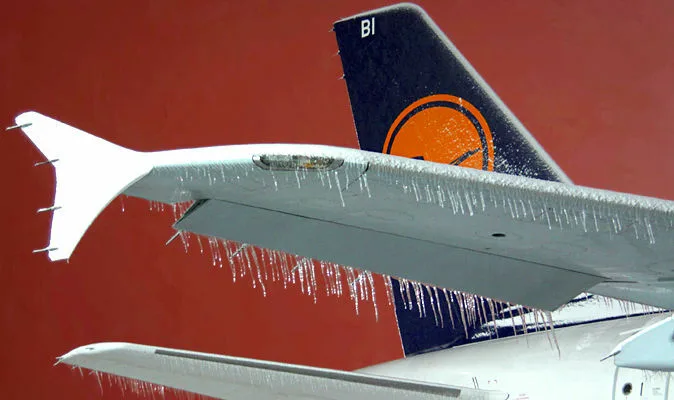 - Воздухозаборники двигателей — лёд нарушает поток воздуха и может оторваться внутрь компрессора